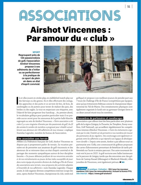 Un article pleine page sur le club est paru dans le journal municipal de Vincennes